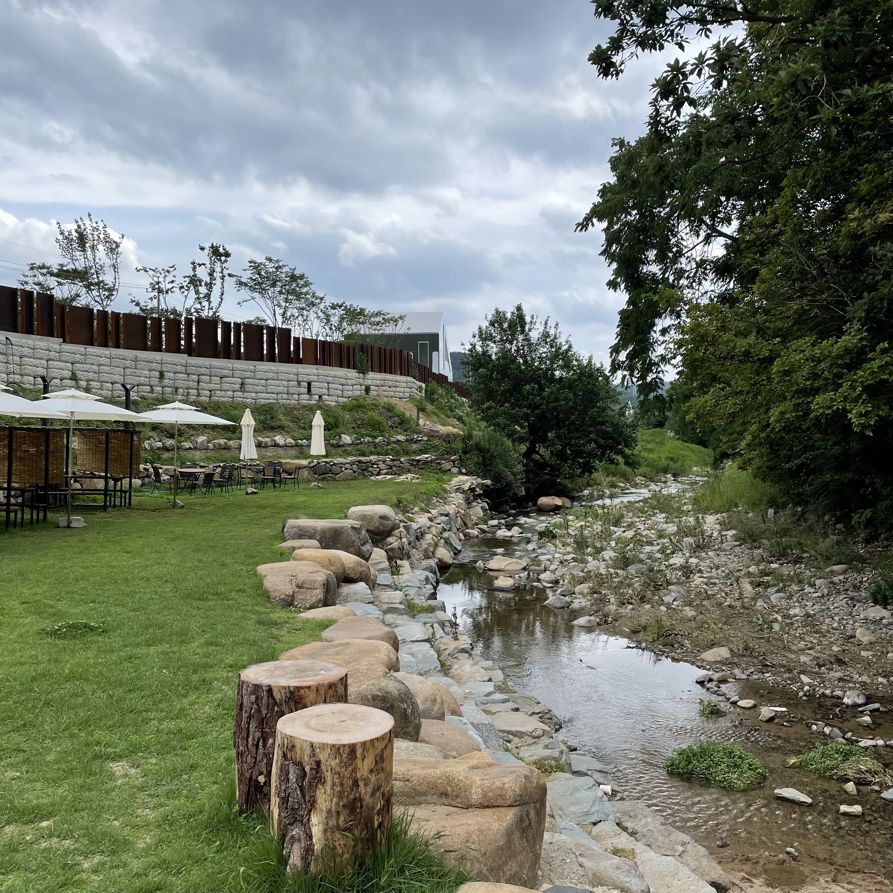 그래도 계곡 앞이라 도심 한가운데 있는 테라스보다는 시원했고, 아이들과 함께 가신다면 잠깐 발도 담글 수 있는 작은 계곡도 아래쪽에 있으니 아이들이 너무 좋아할 것 같습니다.
