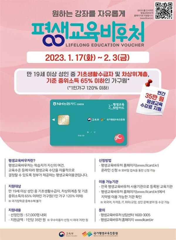 1. 평생 교육 바우처 연간 최대 35만원 까지 수강료 지원